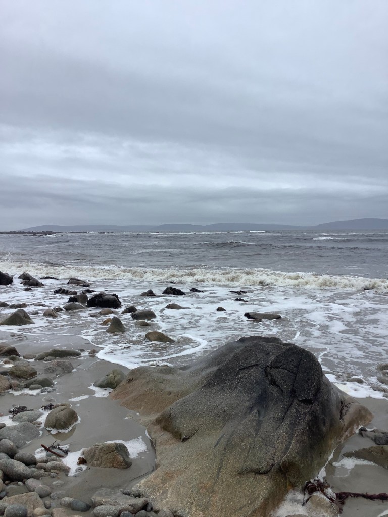rainfall,crashing waves mist hides faraway mountains wipers back and forth